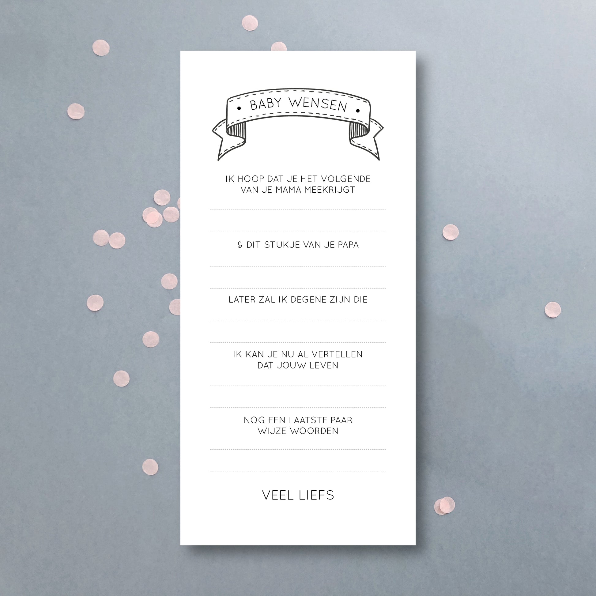 Leuke baby wensen invulkaartjes voor jouw babyborrel, doopfeest of kraambezoek.